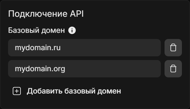 Для безопасности API необходимо указать список доверенных доменов, с которых разрешены запросы. Без указания доменов API будет возвращать ошибку доступа. Для этого нужно:
