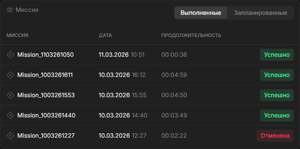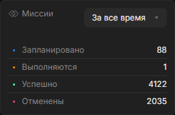 - Успешно — завершённые миссии